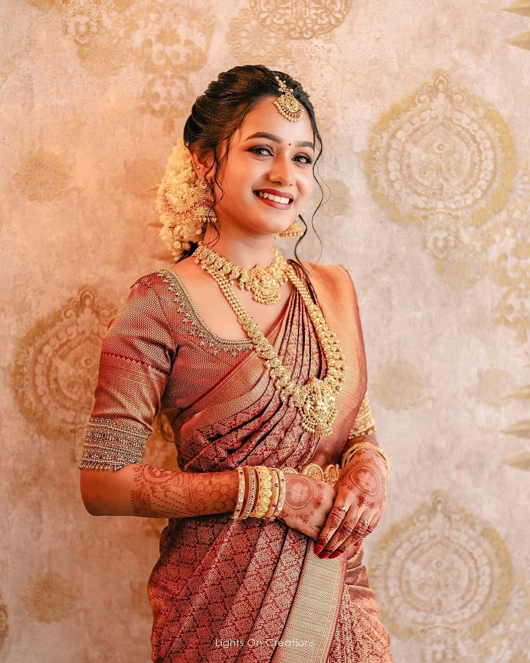 “I wanted a traditional South Indian bridal look with temple jewellery and a bold eye. She came to my venue early in the morning and handled everything smoothly. The detailing, hair styling and saree draping were perfect, and the makeup looked stunning in every photograph. Truly professional and talented.”